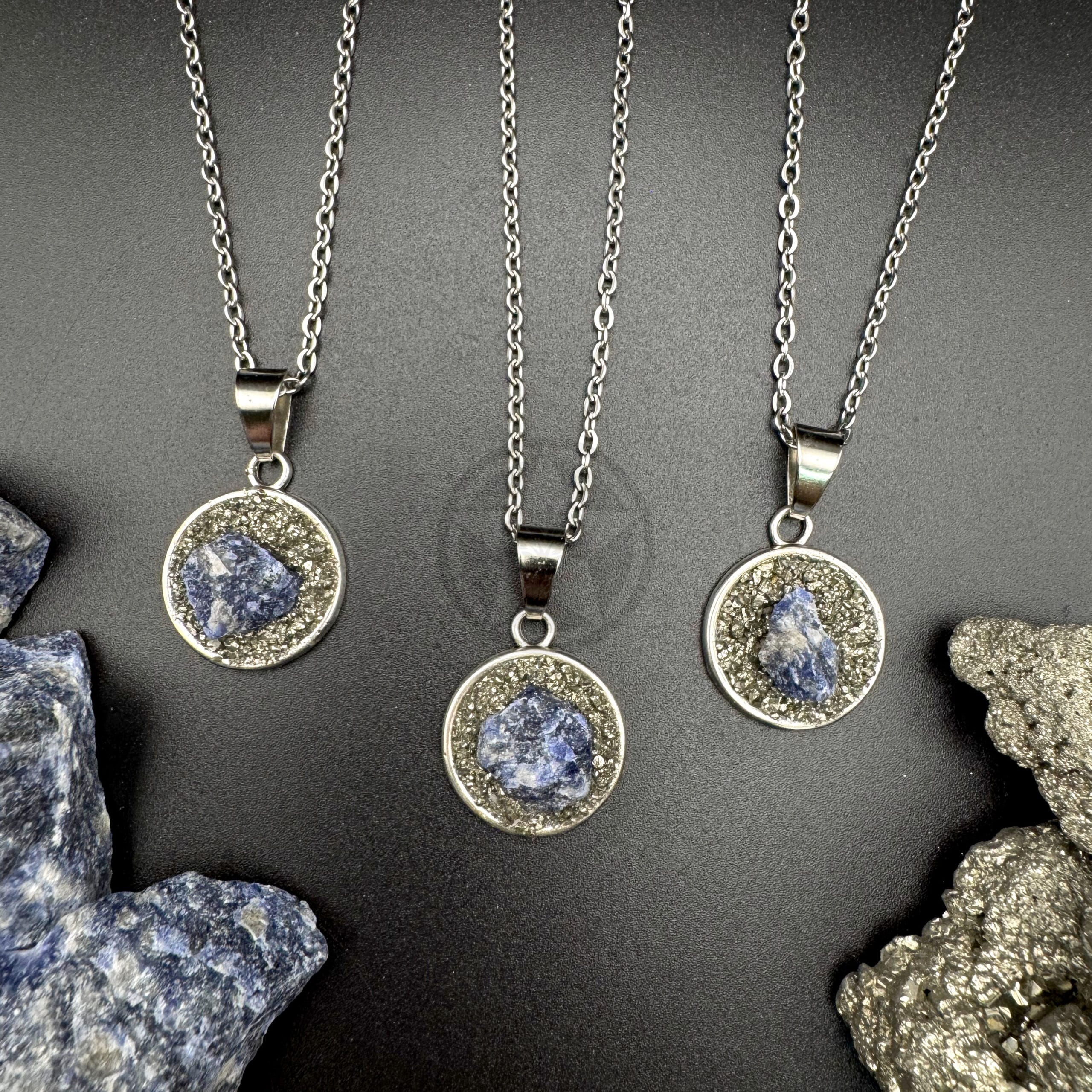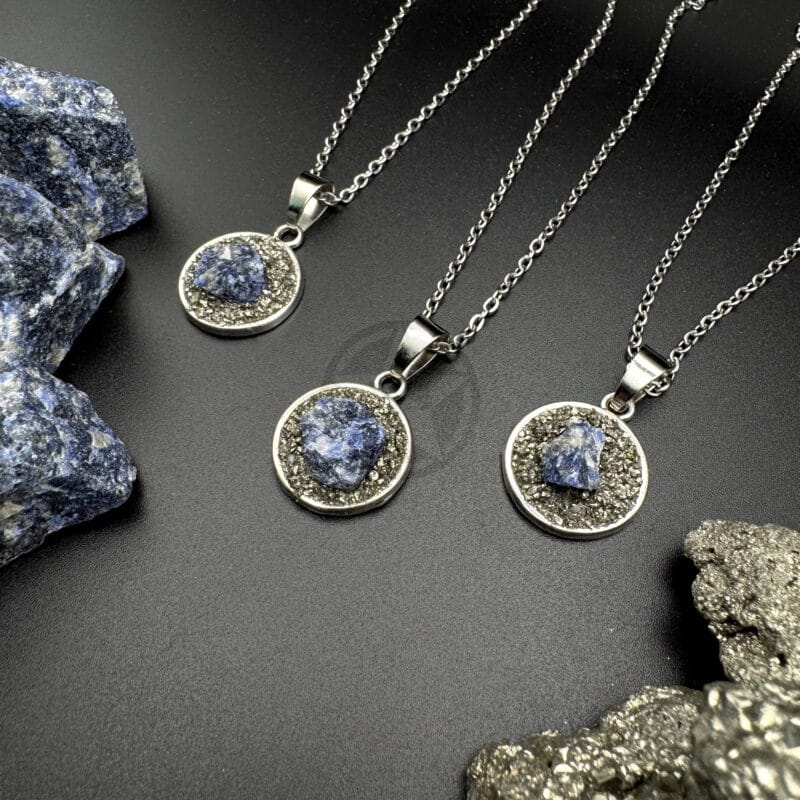 • Propiedades: La increíble combinación de sodalita y pirita crean este potente talismán, capaz de potenciar la confianza y aumentar el autoestima de quien lo porte.