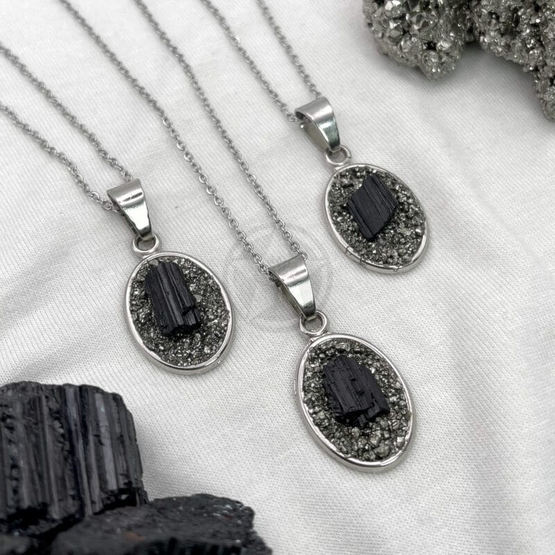 • Propiedades: La turmalina negra con pirita nos aporta la fuerza necesaria para superar desafíos, elimina pensamientos y sentimientos negativos, funciona como un escudo contra la envidia y las malas energías.